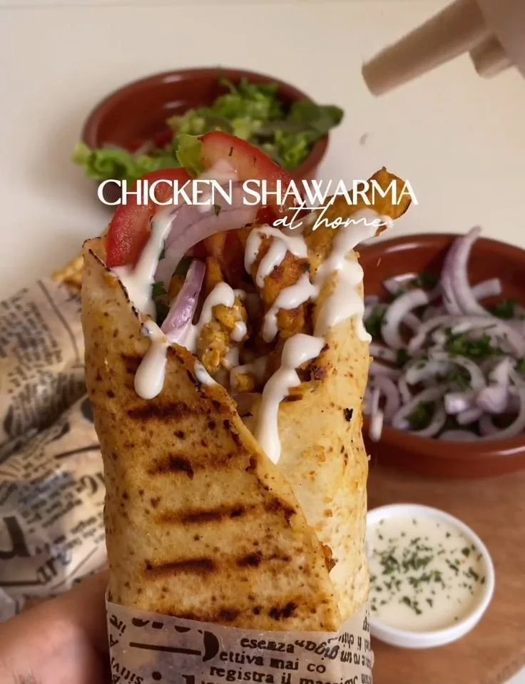 Delicious Chicken Shawarma served with fresh vegetables and sauces.
