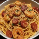 Cette recette combine des crevettes et du chorizo dans une sauce crémeuse. Elle va vite et plaît à beaucoup de monde. Vous pouvez l’ajouter à un menu simple après une cuisson simple d’accompagnement. Creamy Pasta with Chorizo and Shrimp reste une option pratique pour un dîner rapide en semaine.