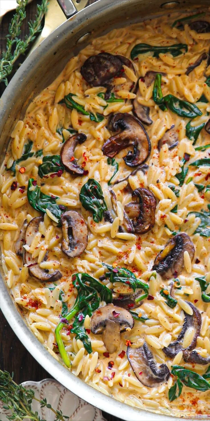 Comment préparer Orzo crémeux aux épinards et champignons chez vous