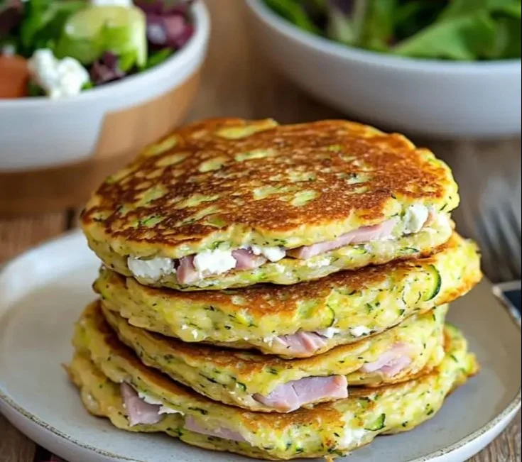 Ces Pancakes à la Courgette Fourrés au Chèvre et Jambon sont moelleux et savoureux, parfaits pour un brunch salé ou un dîner léger. La courgette apporte une texture humide et discrète, tandis que le chèvre fondu crée un cœur gourmand. Si vous cherchez des idées complémentaires, pensez à une recette de courgettes à la crème, jambon et ail pour varier les accompagnements.