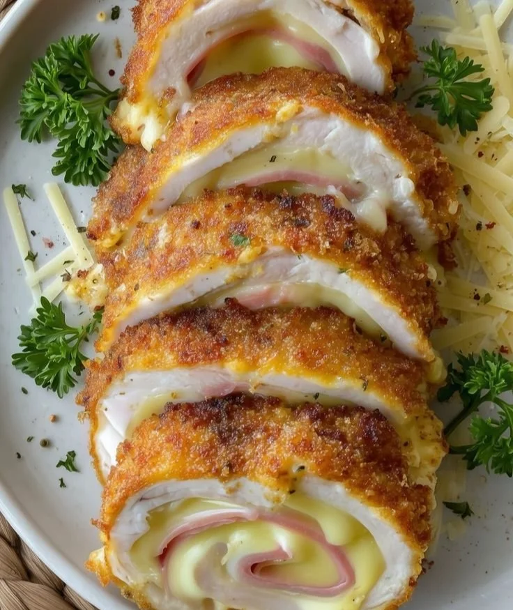 Poulet Cordon Bleu croustillant avec fromage et jambon, prêt à servir
