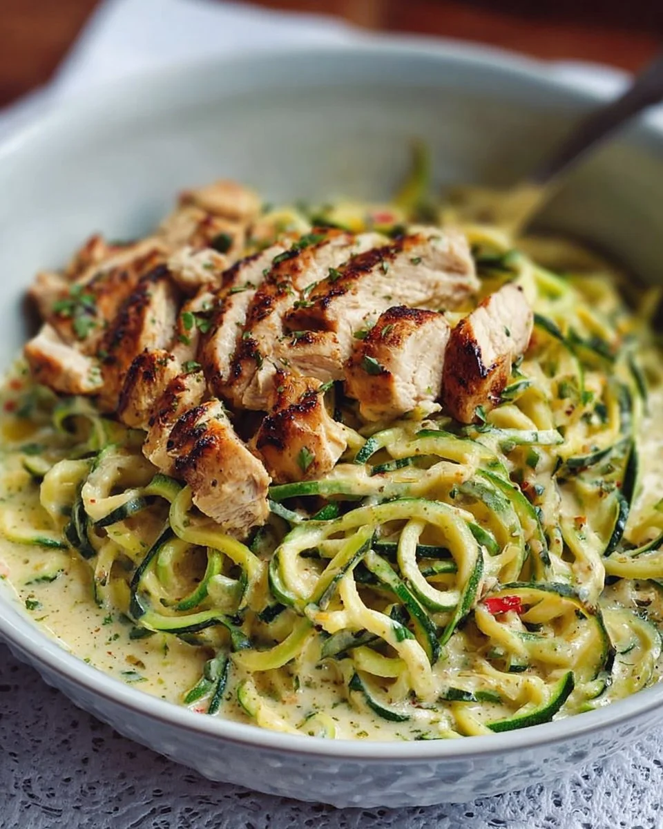 Poulet crémeux à l’Alfredo avec des nouilles de courgette