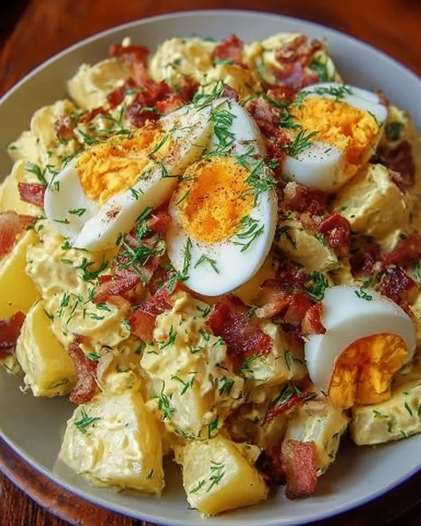 Cette salade de pommes de terre, lardons et œufs est rustique et réconfortante. Elle combine la douceur des pommes de terre avec le croustillant des lardons et la richesse des œufs. Si vous aimez explorer d’autres salades généreuses, jetez un œil à cette salade de pâtes au pesto et mozzarella pour varier les plaisirs. La recette reste simple et rapide à préparer.