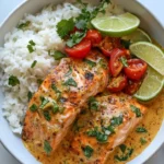 Pourquoi vous allez aimer ce Saumon au curry de coco en une seule poêle avec beurre à l’ail ? Parce que tout se fait dans une seule poêle, donc moins de vaisselle et plus de temps pour profiter. Les saveurs se concentrent : le beurre à l’ail apporte la douceur, la noix de coco donne une texture crémeuse et le curry ajoute juste ce qu’il faut de chaleur. C’est rapide, parfumé et joli à regarder — parfait pour un dîner en semaine ou une petite occasion sans prétention.