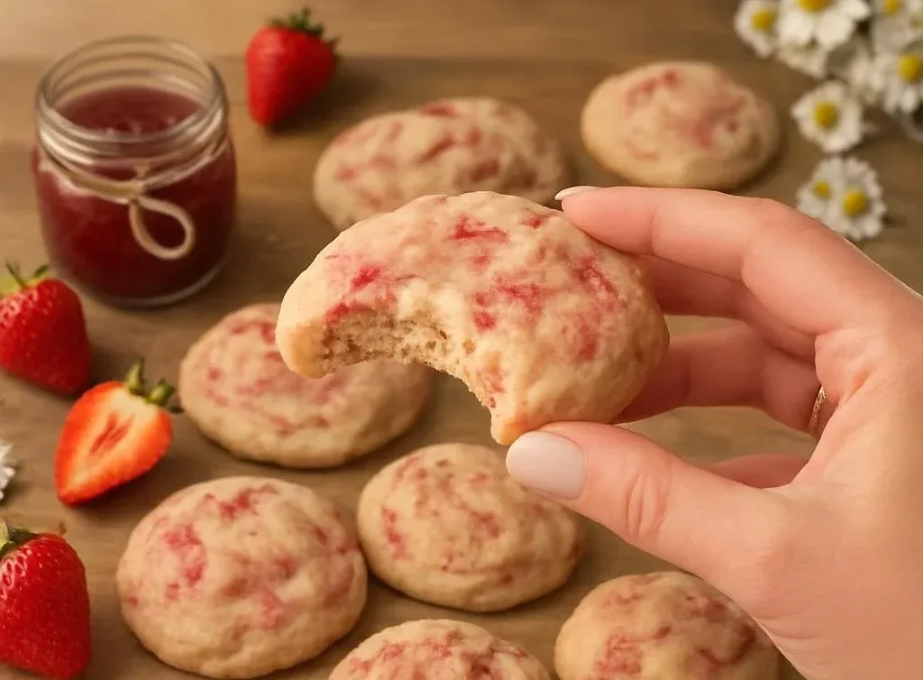 Warm, slightly tangy cream cheese meets sun-ripened strawberry jam inside a buttery cookie — the oven fills the kitchen with a sweet strawberry perfume that makes it impossible to wait. If you love soft-centered treats, these remind me of the same comforting chew in my favorite chocolate cookies but with a bright, fruity twist.