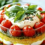 Vous aimerez ce Tiramisu Salé Tomates et Mozza pour sa fraîcheur et sa rapidité de préparation. Le pesto apporte une note aromatique qui relie tous les éléments. Servez-le en entrée froide pour impressionner sans cuire longtemps, ou accompagnez-le de brochettes, comme ces brochettes au parmesan. C’est une recette conviviale, parfaite pour partager.